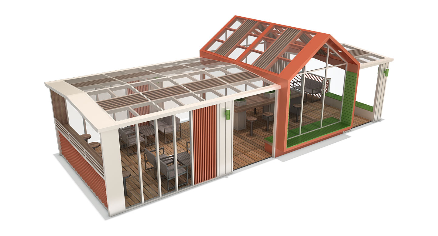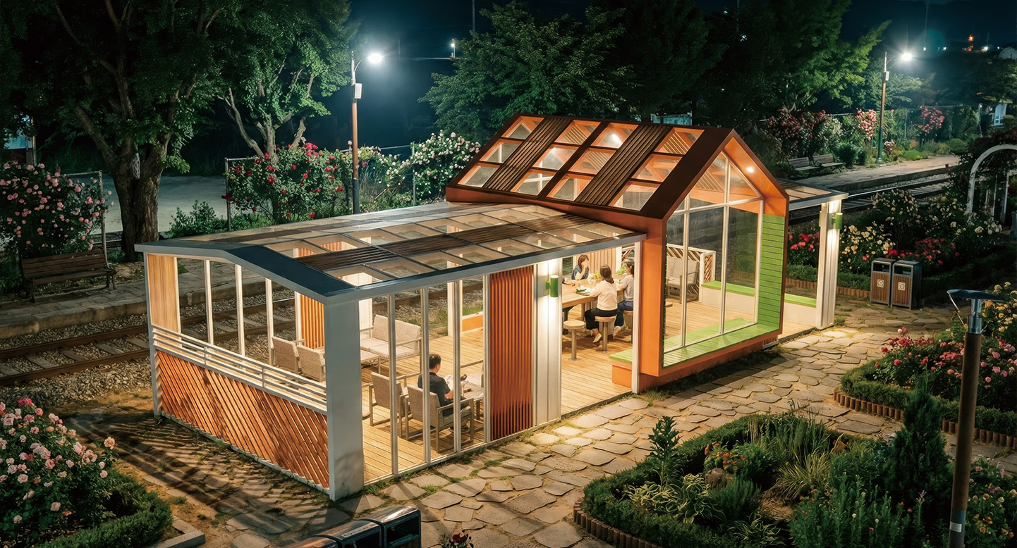 더 그랜드 스칼렛-L(THE GRAND SCARLET-L)|DAUM-P-1776 제품목록으로 바로가기 자료 및 바로가기 나라장터 바로연결 도면 다운로드 시공사진 보러가기 기타 더 스칼렛 아틀리에’를 확장하여 더욱 넓고 화려해진 랜드마크 모델입니다. 높은 층고의 박공지붕과 평지붕이 결합된 하이브리드 구조로, 다채로운 공간감과 함께 리조트 라운지 같은 여유로움을 제공합니다. 제품명 더 그랜드 스칼렛-L(THE GRAND SCARLET-L)|DAUM-P-1776 물품식별번호 25027533 규격 12,000 X 5,000 X 4,075(H) 재질 stl, galvanized, polycarbonate, hpl, hard wood 더 그랜드 스칼렛-L(THE GRAND SCARLET-L)|DAUM-P-1776 물품식별번호 25027533 규격 12,000 X 5,000 X 4,075(H) 재질 stl, galvanized, polycarbonate, hpl, hard wood 기타 더 스칼렛 아틀리에’를 확장하여 더욱 넓고 화려해진 랜드마크 모델입니다. 높은 층고의 박공지붕과 평지붕이 결합된 하이브리드 구조로, 다채로운 공간감과 함께 리조트 라운지 같은 여유로움을 제공합니다. 자료 및 바로가기 나라장터 바로연결 도면 다운로드 시공사진 보러가기