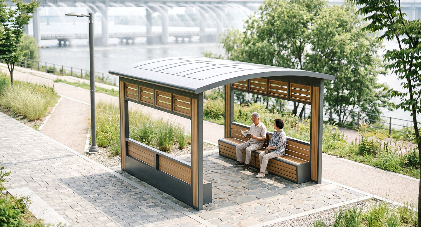 쉐이드 라인 베이직(SHADE LINE BASIC)|DAUM-P-148A 제품목록으로 바로가기 자료 및 바로가기 나라장터 바로연결 도면 다운로드 시공사진 보러가기 기타 지붕 테두리를 감싸는 섬세한 격자형 루버 패턴이 돋보이는 사각 소형 기본형으로, 따뜻한 우드 텍스처와 정제된 프레임이 조화를 이루어 단지 내 휴식 공간에 단아하면서도 풍부한 공간감을 더합니다. 제품명 쉐이드 라인 베이직(SHADE LINE BASIC)|DAUM-P-148A 물품식별번호 25024860 규격 4,000 X 4,000 X 2,700(H) 재질 stl, galvanized, hard wood, polycarbonate 쉐이드 라인 베이직(SHADE LINE BASIC)|DAUM-P-148A 물품식별번호 25024860 규격 4,000 X 4,000 X 2,700(H) 재질 stl, galvanized, hard wood, polycarbonate 기타 지붕 테두리를 감싸는 섬세한 격자형 루버 패턴이 돋보이는 사각 소형 기본형으로, 따뜻한 우드 텍스처와 정제된 프레임이 조화를 이루어 단지 내 휴식 공간에 단아하면서도 풍부한 공간감을 더합니다. 자료 및 바로가기 나라장터 바로연결 도면 다운로드 시공사진 보러가기