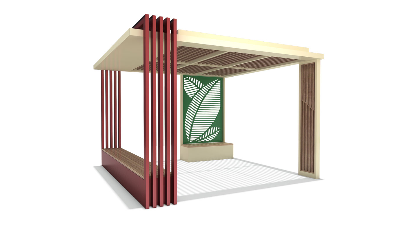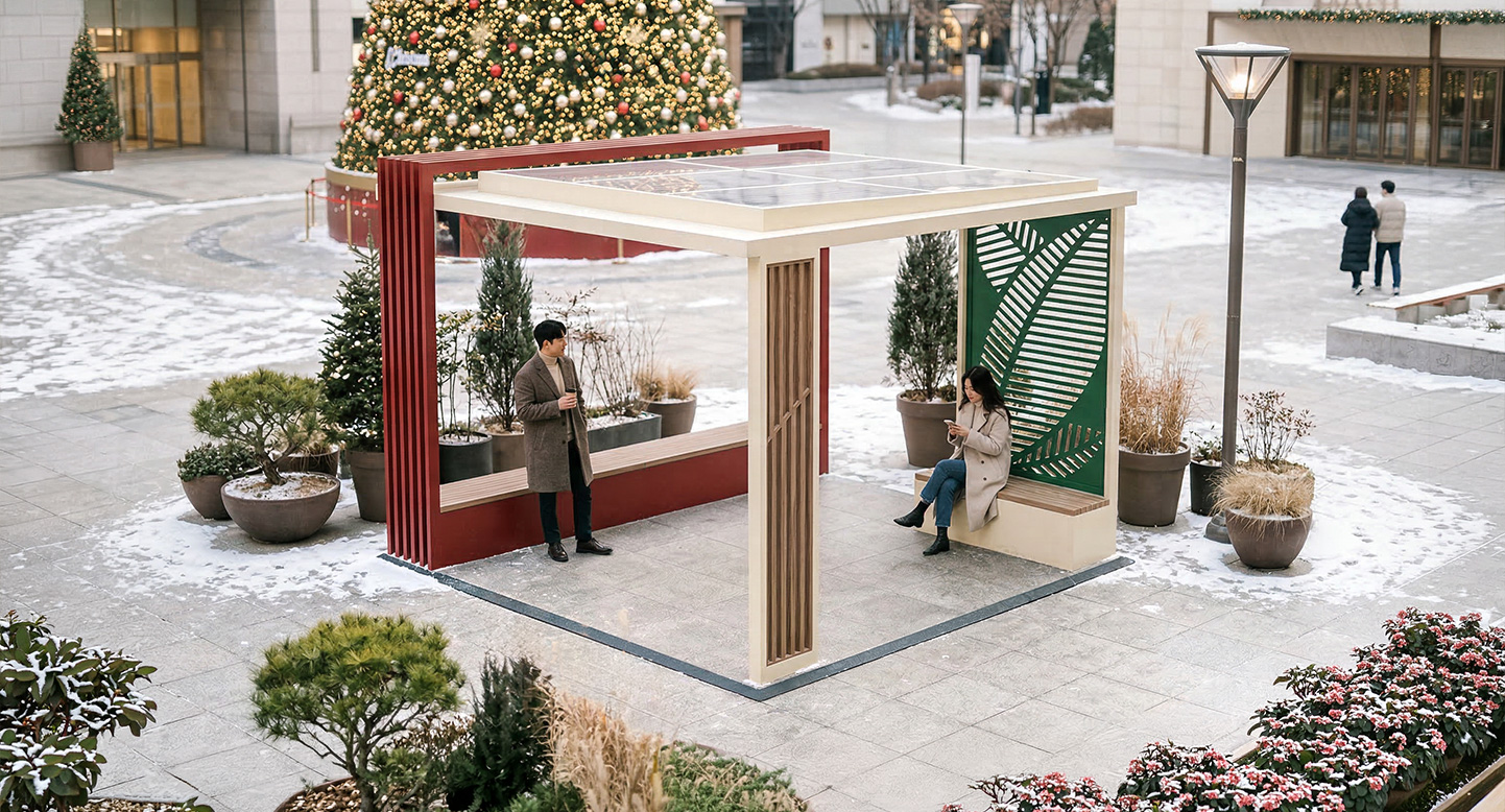 버티컬 레드 플러스(VERTICAL RED PLUS)|DAUM-P-1124 제품목록으로 바로가기 자료 및 바로가기 나라장터 바로연결 도면 다운로드 시공사진 보러가기 기타 강렬한 레드 컬러의 수직 루버 기둥이 공간에 선명한 포인트와 리듬감을 부여합니다. 아이보리 톤의 모던한 프레임 배면에 상징적인 나뭇잎 패턴 스크린을 매치하여, 단지 내 휴게 공간에 감각적인 조형미와 안락함을 동시에 갖춘 프리미엄 쉼터를 제공합니다. 제품명 버티컬 레드 플러스(VERTICAL RED PLUS)|DAUM-P-1124 물품식별번호 25018009 규격 4,000 X 4,000 X 2,800(H) 재질 stl, galvanized, hard wood, polycarbonate 버티컬 레드 플러스(VERTICAL RED PLUS)|DAUM-P-1124 물품식별번호 25018009 규격 4,000 X 4,000 X 2,800(H) 재질 stl, galvanized, hard wood, polycarbonate 기타 강렬한 레드 컬러의 수직 루버 기둥이 공간에 선명한 포인트와 리듬감을 부여합니다. 아이보리 톤의 모던한 프레임 배면에 상징적인 나뭇잎 패턴 스크린을 매치하여, 단지 내 휴게 공간에 감각적인 조형미와 안락함을 동시에 갖춘 프리미엄 쉼터를 제공합니다. 자료 및 바로가기 나라장터 바로연결 도면 다운로드 시공사진 보러가기