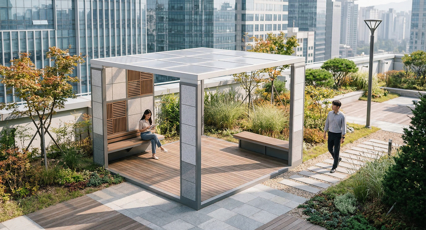 아트월 플러스 (ART-WALL PLUS)|DAUM-P-185A 제품목록으로 바로가기 자료 및 바로가기 나라장터 바로연결 도면 다운로드 시공사진 보러가기 기타 중후한 석재 패턴의 메인 포스트와 배면의 감각적인 체크형 아트월이 어우러져 현대적이고 정갈한 갤러리 감성을 연출합니다. 화이트 프레임 루프 아래 광폭 목재 데크와 안락한 벤치를 결합하여, 단지 내 휴게 공간에 세련되면서도 아늑한 프리미엄 라운지를 제공합니다. 제품명 아트월 플러스 (ART-WALL PLUS)|DAUM-P-185A 물품식별번호 24538216 규격 3,800 X 3,800 X 2,700(H) 재질 stl, galvanized, hard wood, polycarbonate 아트월 플러스 (ART-WALL PLUS)|DAUM-P-185A 물품식별번호 24538216 규격 3,800 X 3,800 X 2,700(H) 재질 stl, galvanized, hard wood, polycarbonate 기타 중후한 석재 패턴의 메인 포스트와 배면의 감각적인 체크형 아트월이 어우러져 현대적이고 정갈한 갤러리 감성을 연출합니다. 화이트 프레임 루프 아래 광폭 목재 데크와 안락한 벤치를 결합하여, 단지 내 휴게 공간에 세련되면서도 아늑한 프리미엄 라운지를 제공합니다. 자료 및 바로가기 나라장터 바로연결 도면 다운로드 시공사진 보러가기