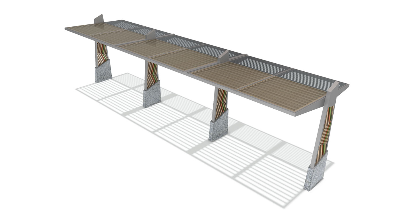 지오 와이드 라인(GEO WIDE LINE)|DAUM-P-425A-3 제품목록으로 바로가기 자료 및 바로가기 나라장터 바로연결 도면 다운로드 시공사진 보러가기 기타 사선 패턴의 연속성이 주는 속도감과 조형미가 특징인 확장형 모델입니다. 현대적인 건축물 주변이나 오피스 광장에 잘 어울립니다. 제품명 지오 와이드 라인(GEO WIDE LINE)|DAUM-P-425A-3 물품식별번호 25029104 규격 10,300 X 2,600 X 2,900(H) 재질 stl, hard wood, polycarbonate, 화강석 지오 와이드 라인(GEO WIDE LINE)|DAUM-P-425A-3 물품식별번호 25029104 규격 10,300 X 2,600 X 2,900(H) 재질 stl, hard wood, polycarbonate, 화강석 기타 사선 패턴의 연속성이 주는 속도감과 조형미가 특징인 확장형 모델입니다. 현대적인 건축물 주변이나 오피스 광장에 잘 어울립니다. 자료 및 바로가기 나라장터 바로연결 도면 다운로드 시공사진 보러가기