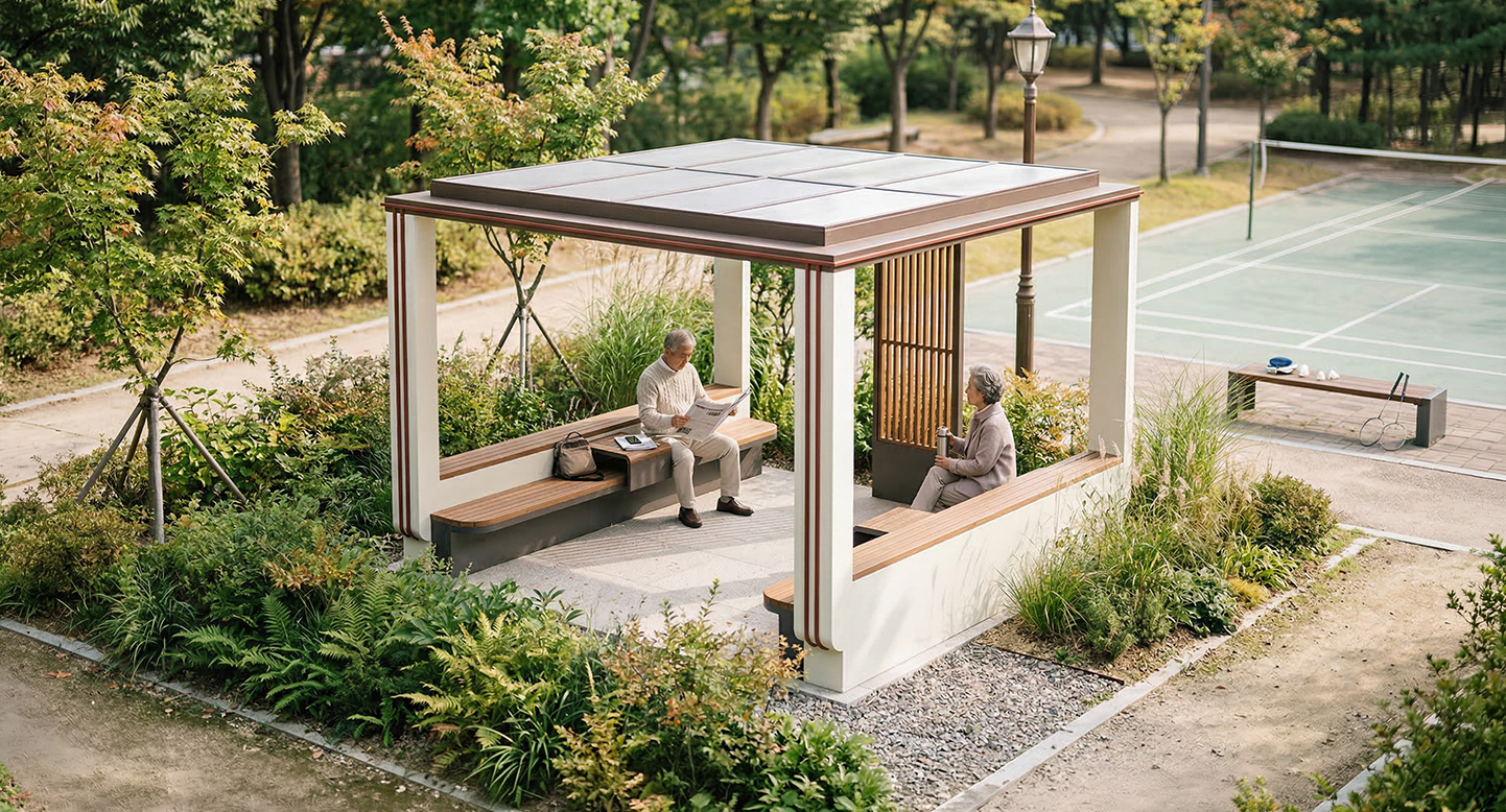 레드 라인 플러스(RED LINE PLUS)|DAUM-P-1133 제품목록으로 바로가기 자료 및 바로가기 나라장터 바로연결 도면 다운로드 시공사진 보러가기 기타 아이보리 컬러의 정갈한 광폭 기둥과 이를 가로지르는 강렬한 레드 포인트 라인이 조화를 이루어 감각적이고 세련된 경관을 선사합니다. 차분한 브라운 톤의 상부 격자 루버와 내부에 설계된 와이드 벤치를 통해 단지 내 공간에 모던하면서도 안락한 프리미엄 휴식처를 제공합니다. 제품명 레드 라인 플러스(RED LINE PLUS)|DAUM-P-1133 물품식별번호 25018038 규격 4,000 X 4,000 X 2,700(H) 재질 stl, galvanized, hard wood, polycarbonate, hpl 레드 라인 플러스(RED LINE PLUS)|DAUM-P-1133 물품식별번호 25018038 규격 4,000 X 4,000 X 2,700(H) 재질 stl, galvanized, hard wood, polycarbonate, hpl 기타 아이보리 컬러의 정갈한 광폭 기둥과 이를 가로지르는 강렬한 레드 포인트 라인이 조화를 이루어 감각적이고 세련된 경관을 선사합니다. 차분한 브라운 톤의 상부 격자 루버와 내부에 설계된 와이드 벤치를 통해 단지 내 공간에 모던하면서도 안락한 프리미엄 휴식처를 제공합니다. 자료 및 바로가기 나라장터 바로연결 도면 다운로드 시공사진 보러가기