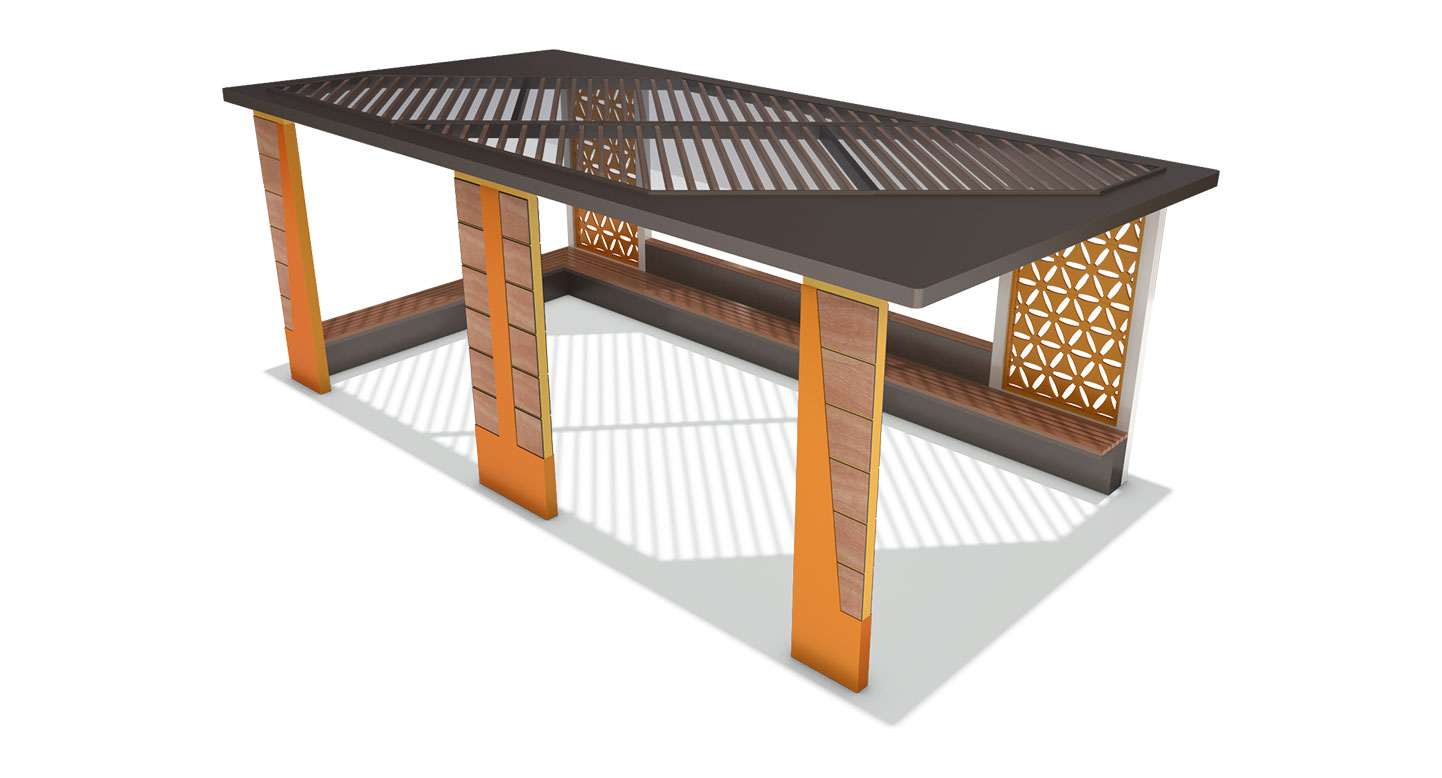 사각 대형 복합형 카테고리의 웅장함을 대표하는 모델로, 강렬한 오렌지 컬러 포인트와 세련된 타공 파티션이 결합된 프리미엄 쉘터입니다. 내부를 감싸는 일체형 벤치는 다수의 사용자가 동시에 휴식할 수 있는 넉넉한 공간을 제공하며, 상부의 정교한 루버 디자인과 측면 파티션이 만들어내는 빛의 변주는 단지 내 광장이나 커뮤니티 공간의 품격을 한층 높여줍니다.