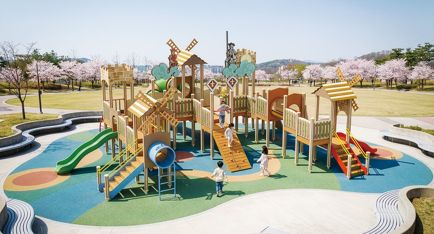 스카이 버드 드림 캐슬(Sky Bird Dream Castle)|DAPG-011 제품목록으로 바로가기 자료 및 바로가기 나라장터 바로연결 도면 다운로드 시공사진 보러가기 기타 파란 하늘을 자유롭게 나는 새들을 모티브로 한 웅장한 랜드마크입니다. 구름 위를 걷는듯한 구름다리와 시원한 블루 원통 슬라이드가 조화를 이루며, 하늘색과 난색 계열의 파스텔톤 컬러가 아이들에게 동화 속 환상적인 비행 모험을 선사합니다. 제품명 스카이 버드 드림 캐슬(Sky Bird Dream Castle)|DAPG-011 물품식별번호 25289072|안전인증번호 : CA023H10020-3025 규격 12.500×9.720×4.770(H) 재질 stl, hpl, hard wood 스카이 버드 드림 캐슬(Sky Bird Dream Castle)|DAPG-011 물품식별번호 25289072|안전인증번호 : CA023H10020-3025 규격 12.500×9.720×4.770(H) 재질 stl, hpl, hard wood 기타 파란 하늘을 자유롭게 나는 새들을 모티브로 한 웅장한 랜드마크입니다. 구름 위를 걷는듯한 구름다리와 시원한 블루 원통 슬라이드가 조화를 이루며, 하늘색과 난색 계열의 파스텔톤 컬러가 아이들에게 동화 속 환상적인 비행 모험을 선사합니다. 자료 및 바로가기 나라장터 바로연결 도면 다운로드 시공사진 보러가기