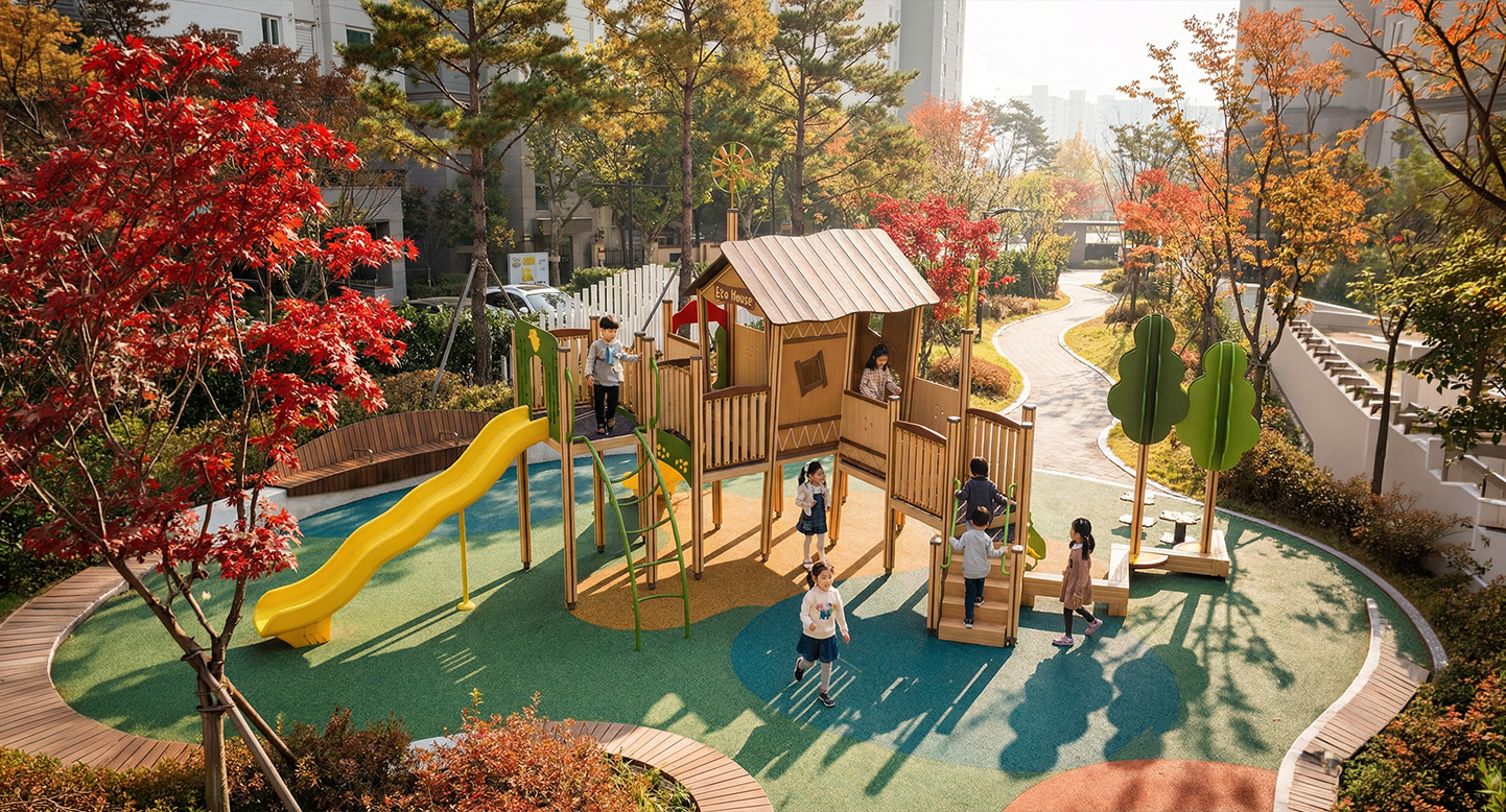 에코 타워 테라스(ECO TOWER TERRACE)|DAUM-PG-101-1A 제품목록으로 바로가기 자료 및 바로가기 나라장터 바로연결 도면 다운로드 시공사진 보러가기 기타 바람개비와 오두막이 조화를 이룬 조형적 놀이 공간으로, 인위적인 장식을 배제한 소재 본연의 질감을 통해 아이들이 자연의 숨결을 느끼며 건강하게 활동할 수 있는 친환경 쉼터를 조성합니다. 제품명 에코 타워 테라스(ECO TOWER TERRACE)|DAUM-PG-101-1A 물품식별번호 25019846|안전인증번호 : CA023H093-7005B 규격 10,985 X 7,930 X 4,430(H) 재질 sts, stl, birch plywood, hard wood, hpl, Aluminium-BAR, pe 에코 타워 테라스(ECO TOWER TERRACE)|DAUM-PG-101-1A 물품식별번호 25019846|안전인증번호 : CA023H093-7005B 규격 10,985 X 7,930 X 4,430(H) 재질 sts, stl, birch plywood, hard wood, hpl, Aluminium-BAR, pe 기타 바람개비와 오두막이 조화를 이룬 조형적 놀이 공간으로, 인위적인 장식을 배제한 소재 본연의 질감을 통해 아이들이 자연의 숨결을 느끼며 건강하게 활동할 수 있는 친환경 쉼터를 조성합니다. 자료 및 바로가기 나라장터 바로연결 도면 다운로드 시공사진 보러가기