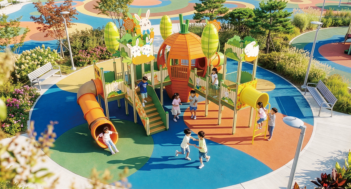 바니 당근 농장 그랜드(Bunny Carrot Farm Grand)|DAPG-013 제품목록으로 바로가기 자료 및 바로가기 나라장터 바로연결 도면 다운로드 시공사진 보러가기 기타 거대한 당근 하우스를 중심으로 귀여운 토끼들이 뛰어노는 농장 테마의 랜드마크입니다. 당근 속을 탐험하듯 연결되 통로와 짜릿한 튜브슬라이드가 어우러져, 아이들에게 풍성한 수확의 기쁨과 동화 같은 상상력을 선물합니다 제품명 바니 당근 농장 그랜드(Bunny Carrot Farm Grand)|DAPG-013 물품식별번호 25296712|안전인증번호 : CA023H110-9002A 규격 12,728×9,532×4,920(H) 재질 stl, hpl, hard wood 바니 당근 농장 그랜드(Bunny Carrot Farm Grand)|DAPG-013 물품식별번호 25296712|안전인증번호 : CA023H110-9002A 규격 12,728×9,532×4,920(H) 재질 stl, hpl, hard wood 기타 거대한 당근 하우스를 중심으로 귀여운 토끼들이 뛰어노는 농장 테마의 랜드마크입니다. 당근 속을 탐험하듯 연결되 통로와 짜릿한 튜브슬라이드가 어우러져, 아이들에게 풍성한 수확의 기쁨과 동화 같은 상상력을 선물합니다 자료 및 바로가기 나라장터 바로연결 도면 다운로드 시공사진 보러가기