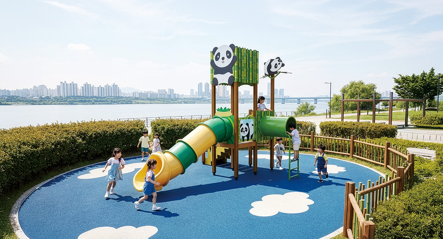 판다 뱀부 리프 슬라이드(PandaBambooLeafSlide)|DAPG-012-10 제품목록으로 바로가기 자료 및 바로가기 나라장터 바로연결 도면 다운로드 시공사진 보러가기 기타 부드러운 곡선의 슬라이드와 안전한 덱이 어우러져 있으며, 싱그러운 연두색 컬러가 아이들에게 시각적인 편안함을 주고 숲속 요정이 된듯한 기분을 선사합니다. 제품명 판다 뱀부 리프 슬라이드(PandaBambooLeafSlide)|DAPG-012-10 물품식별번호 25289208|안전인증번호 : CA023H10020-3025 규격 5,848×3,896×4.390(H) 재질 stl, hpl, pe, hard wood 판다 뱀부 리프 슬라이드(PandaBambooLeafSlide)|DAPG-012-10 물품식별번호 25289208|안전인증번호 : CA023H10020-3025 규격 5,848×3,896×4.390(H) 재질 stl, hpl, pe, hard wood 기타 부드러운 곡선의 슬라이드와 안전한 덱이 어우러져 있으며, 싱그러운 연두색 컬러가 아이들에게 시각적인 편안함을 주고 숲속 요정이 된듯한 기분을 선사합니다. 자료 및 바로가기 나라장터 바로연결 도면 다운로드 시공사진 보러가기