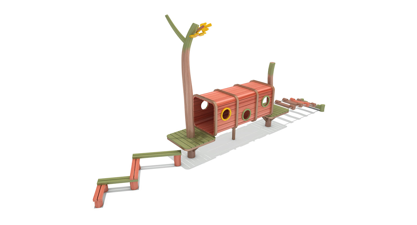 DAUM-RO-105-3 (통나무통과놀이대D) 제품목록으로 바로가기 자료 및 바로가기 나라장터 바로연결 도면 다운로드 시공사진 보러가기 기타 고정된 원목 발판과 통나무 형태의 터널을 따라 이동하며 균형감각과 신체 협응력을 기르는 자연친화형 놀이시설입니다. 터널 내부를 기어가고 바깥으로 이동하며 다양한 동작을 경험할 수 있어 아이들의 모험심과 상상놀이가 함께 자극됩니다. 제품명 DAUM-RO-105-3 (통나무통과놀이대D) 물품식별번호 25489987 규격 8,127 × 1,120 × 3,000(H) 재질 robinia, PP rope DAUM-RO-105-3 (통나무통과놀이대D) 물품식별번호 25489987 규격 8,127 × 1,120 × 3,000(H) 재질 robinia, PP rope 기타 고정된 원목 발판과 통나무 형태의 터널을 따라 이동하며 균형감각과 신체 협응력을 기르는 자연친화형 놀이시설입니다. 터널 내부를 기어가고 바깥으로 이동하며 다양한 동작을 경험할 수 있어 아이들의 모험심과 상상놀이가 함께 자극됩니다. 자료 및 바로가기 나라장터 바로연결 도면 다운로드 시공사진 보러가기